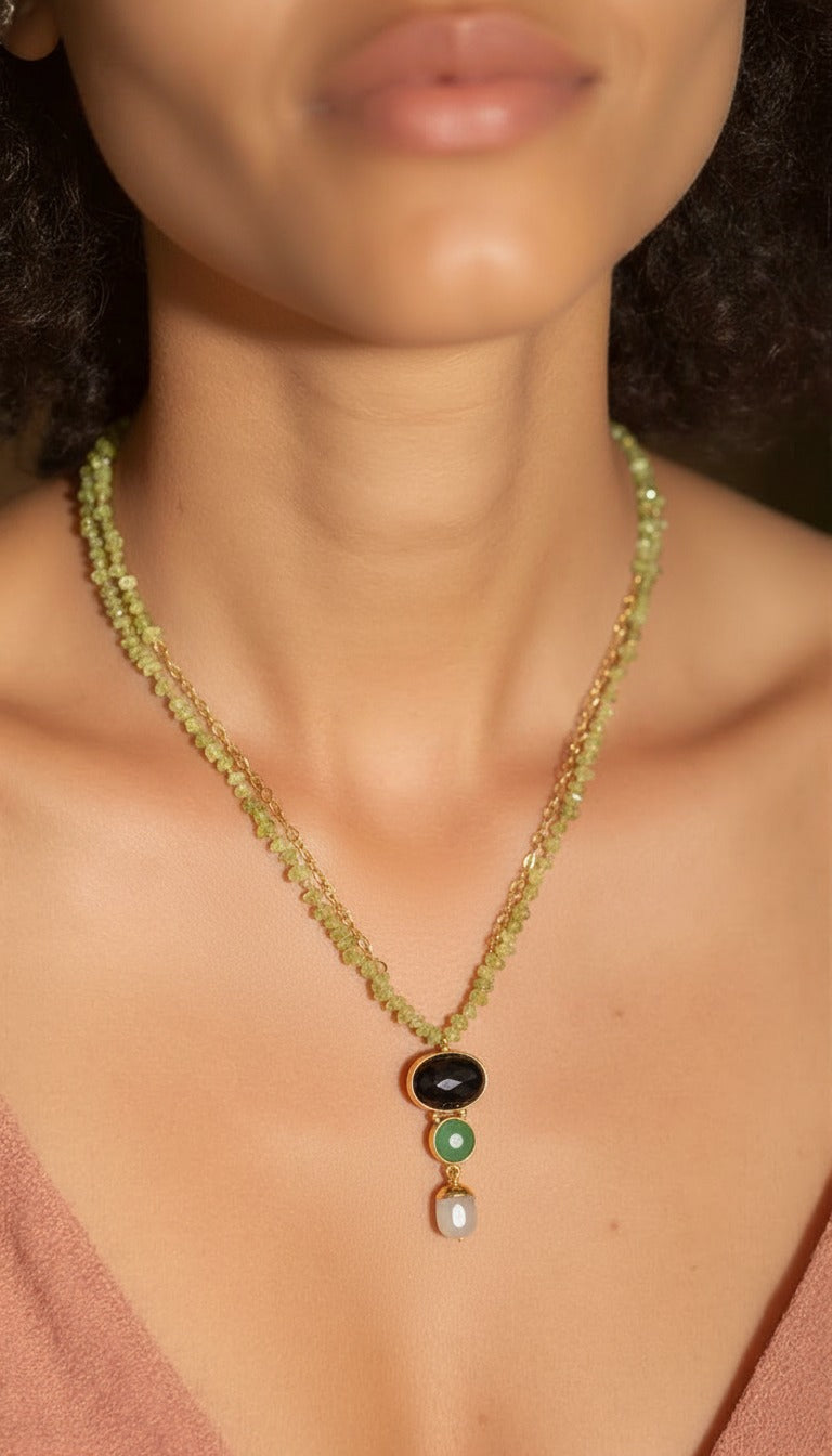 Triple Gem Drop Necklace in 18K Gold Plated Brass