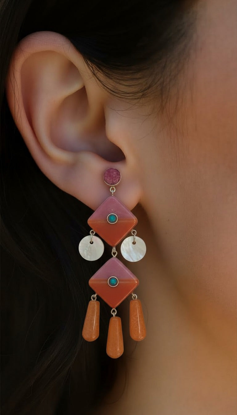 Desert Sunset Geometric Drop Earrings.